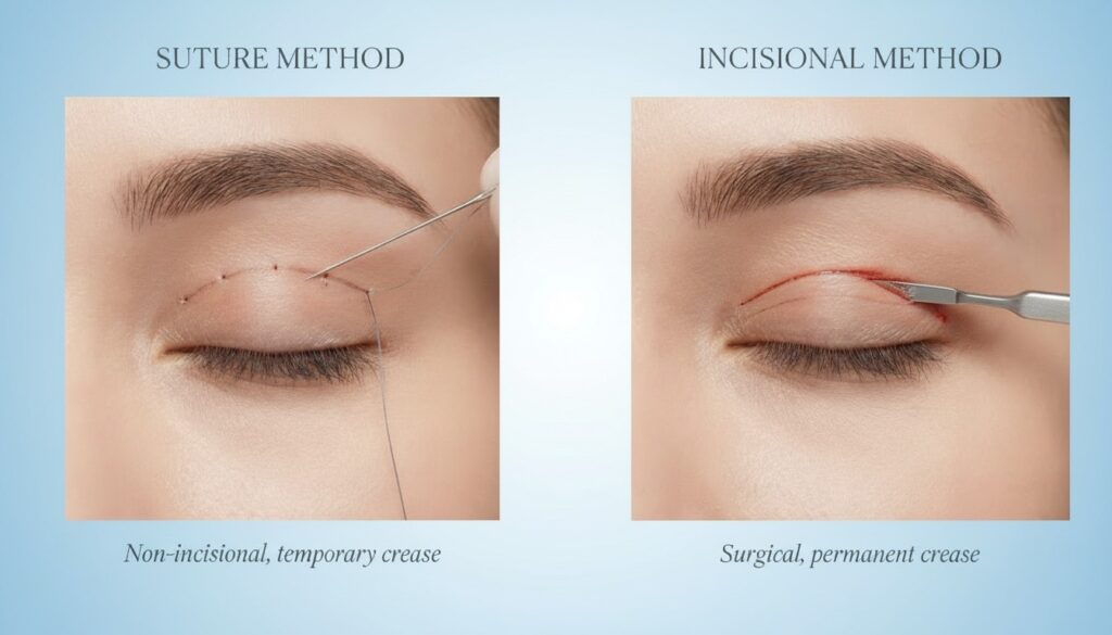 The double eyelid suture method is great for a lot of people, but if you’ve got really thick or saggy eyelids, the incisional method might be a better fit for you.